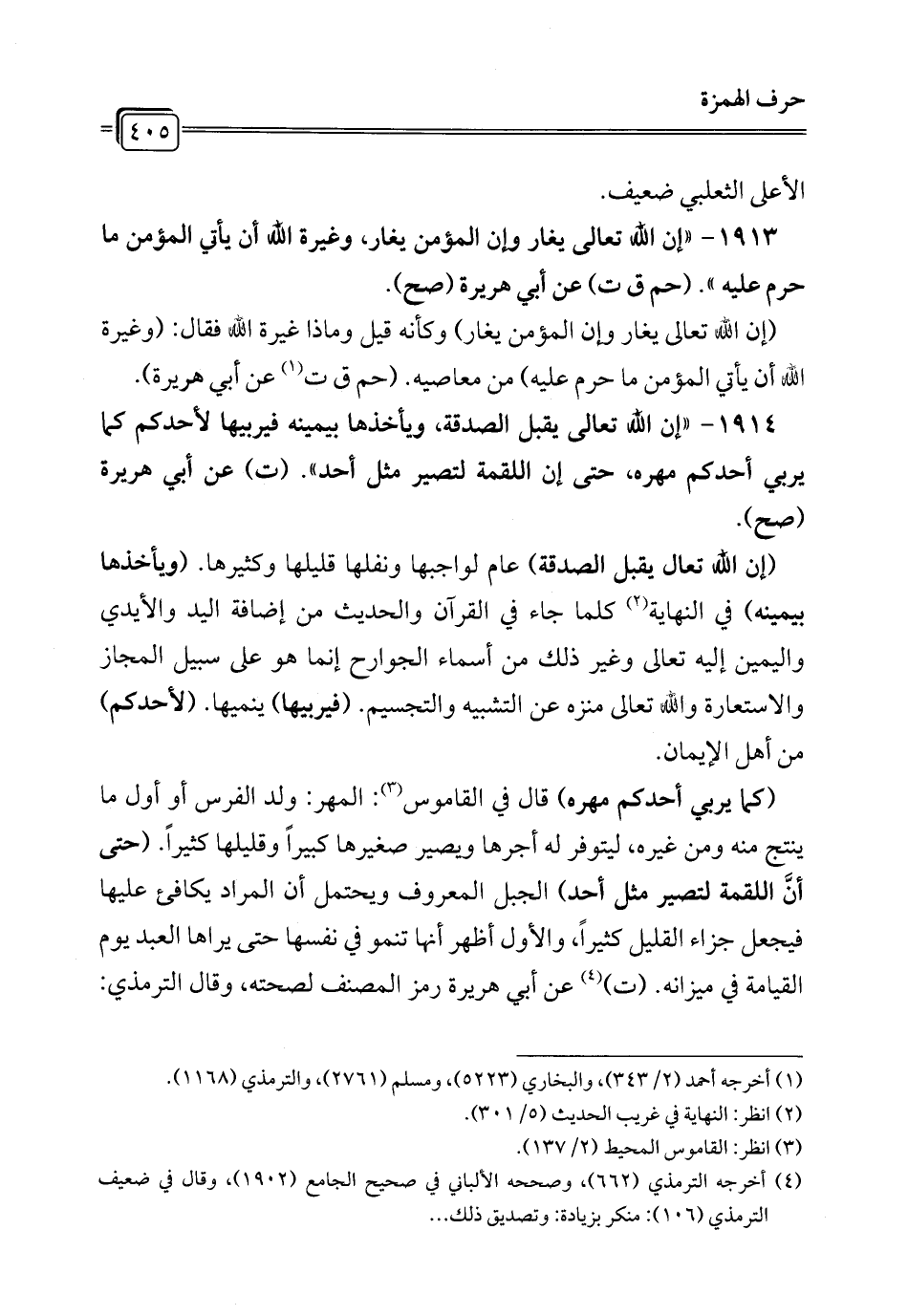 1914 - "إن الله تعالى يقبل الصدقة، ويأخذها بيمينه فيربيها لأحدكم كما يربي أحدكم مهره، حتى إن اللقمة لتصير مثل أحد". (ت) عن أبي هريرة (صح).