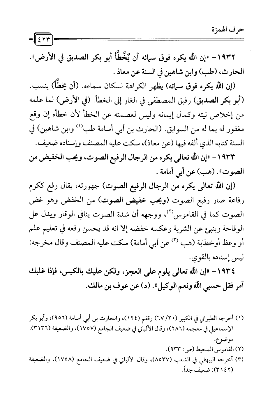 1933 - "إن الله تعالى يكره من الرجال الرفيع الصوت، ويحب الخفيض من الصوت". (هب) عن أبي أمامة.