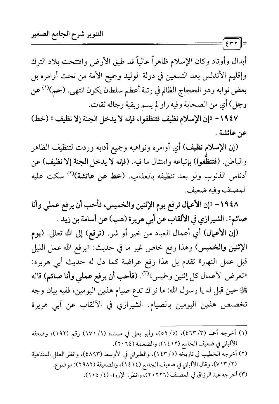 1948 - "إن الأعمال ترفع يوم الإثنين والخميس، فأحب أن يرفع عملي وأنا صائم". الشيرازي في الألقاب عن أبي هريرة (هب) عن أسامة بن زيد.