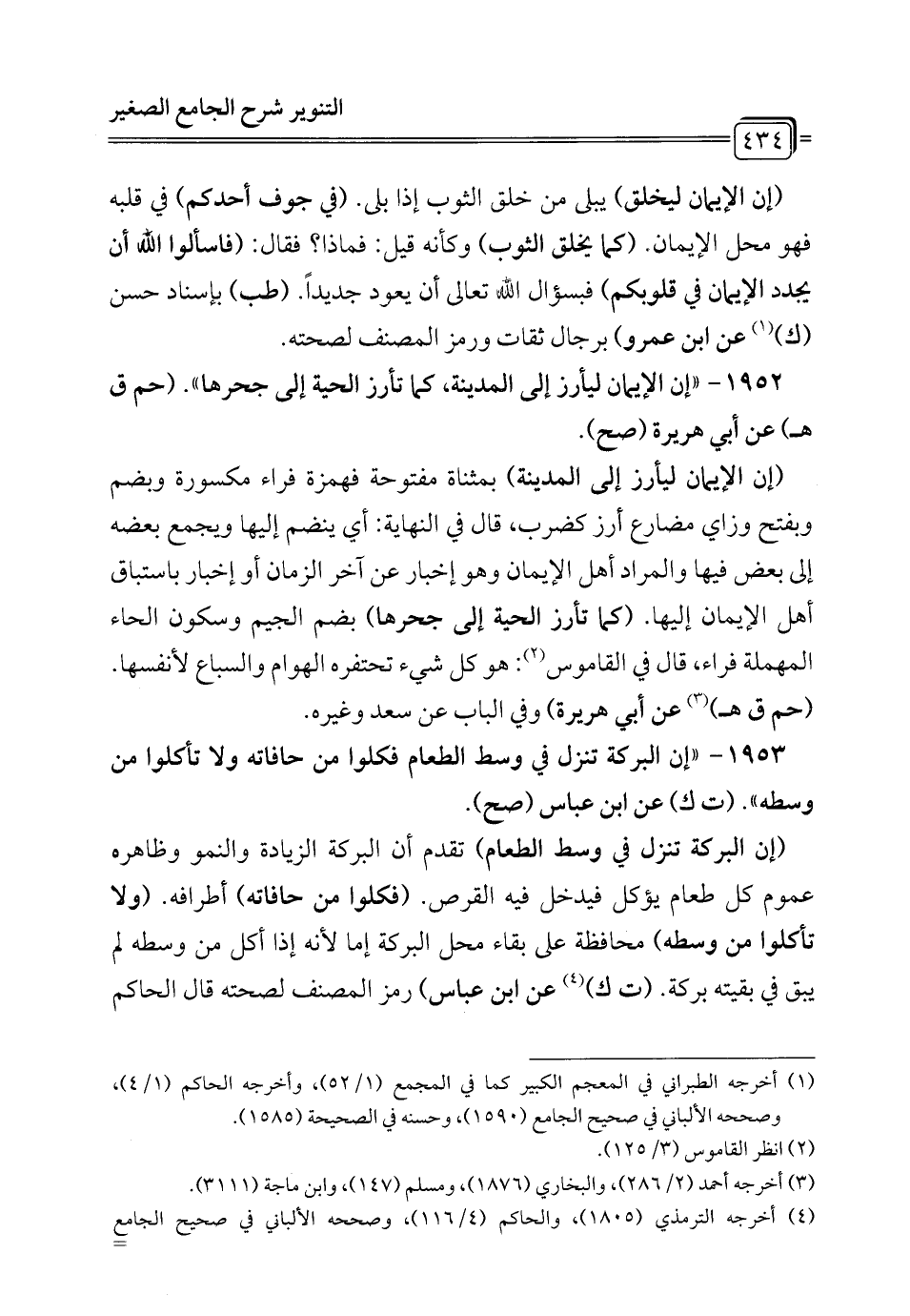 1952 - "إن الإيمان ليأرز إلى المدينة، كما تأرز الحية إلى جحرها". (حم ق هـ) عن أبي هريرة (صح).