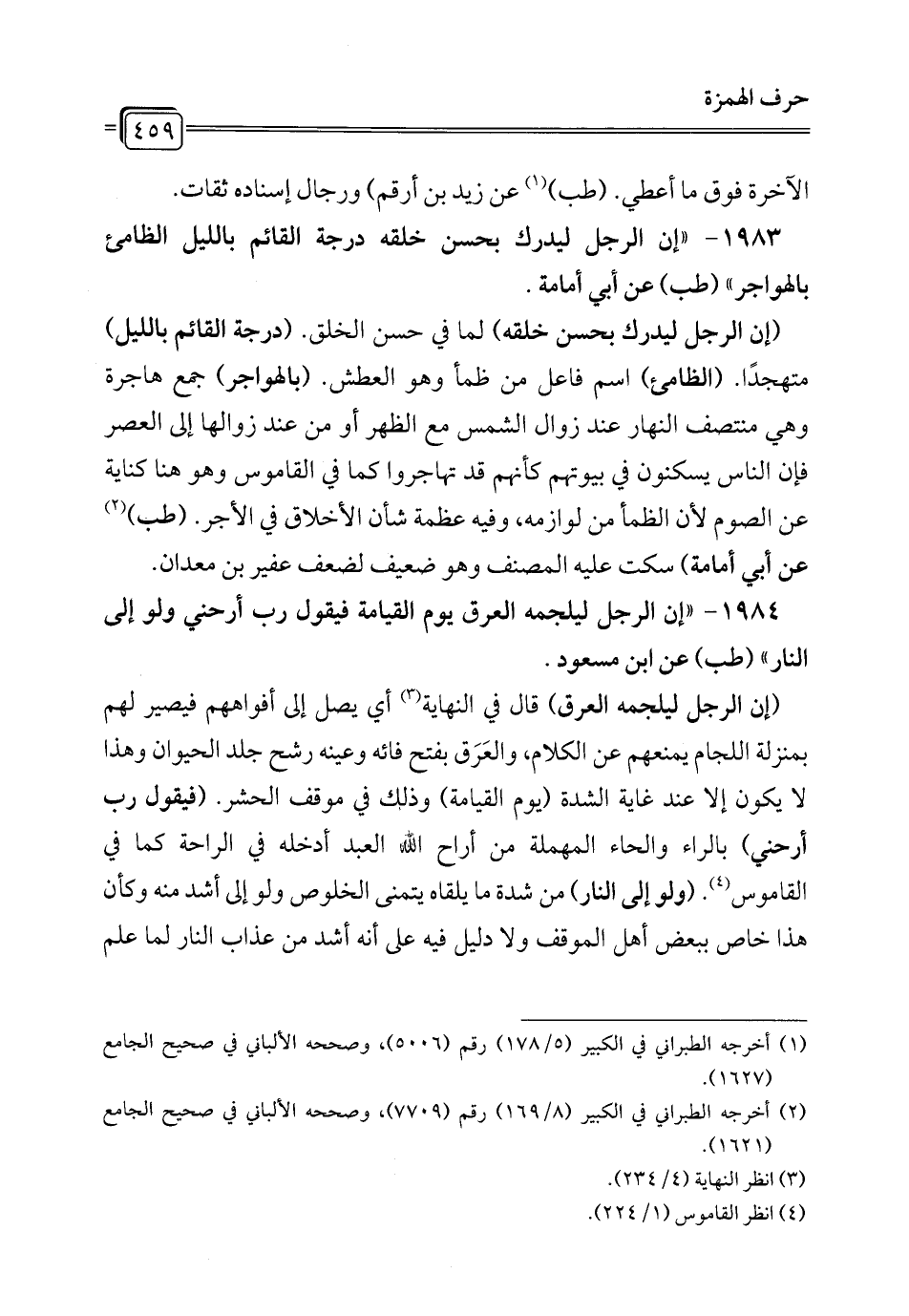 1983 - "إن الرجل ليدرك بحسن خلقه درجة القائم بالليل الظامئ بالهواجر" (طب) عن أبي أمامة.