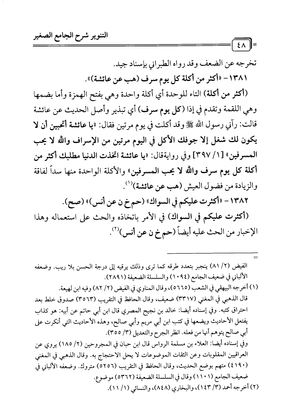 1381 - "أكثر من أكلة كل يوم سرف (هب عن عائشة) ".