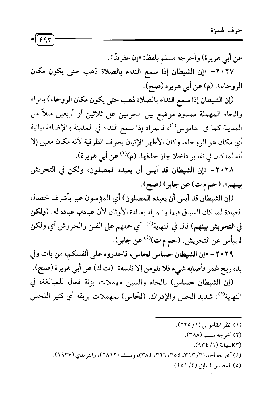 2027 - "إن الشيطان إذا سمع النداء بالصلاة ذهب حتى يكون مكان الروحاء". (م) عن أبي هريرة (صح).