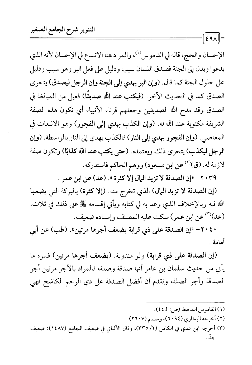 2039 - "إن الصدقة لا تزيد المال إلا كثرة". (عد) عن ابن عمر.