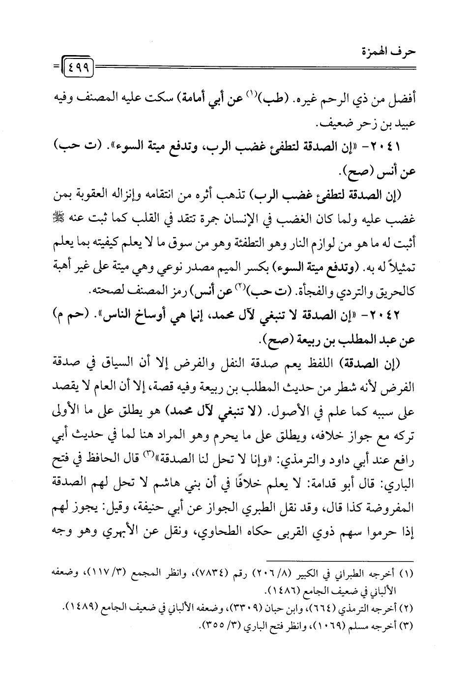 2041 - "إن الصدقة لتطفئ غضب الرب، وتدفع ميتة السوء". (ت حب) عن أنس (صح).