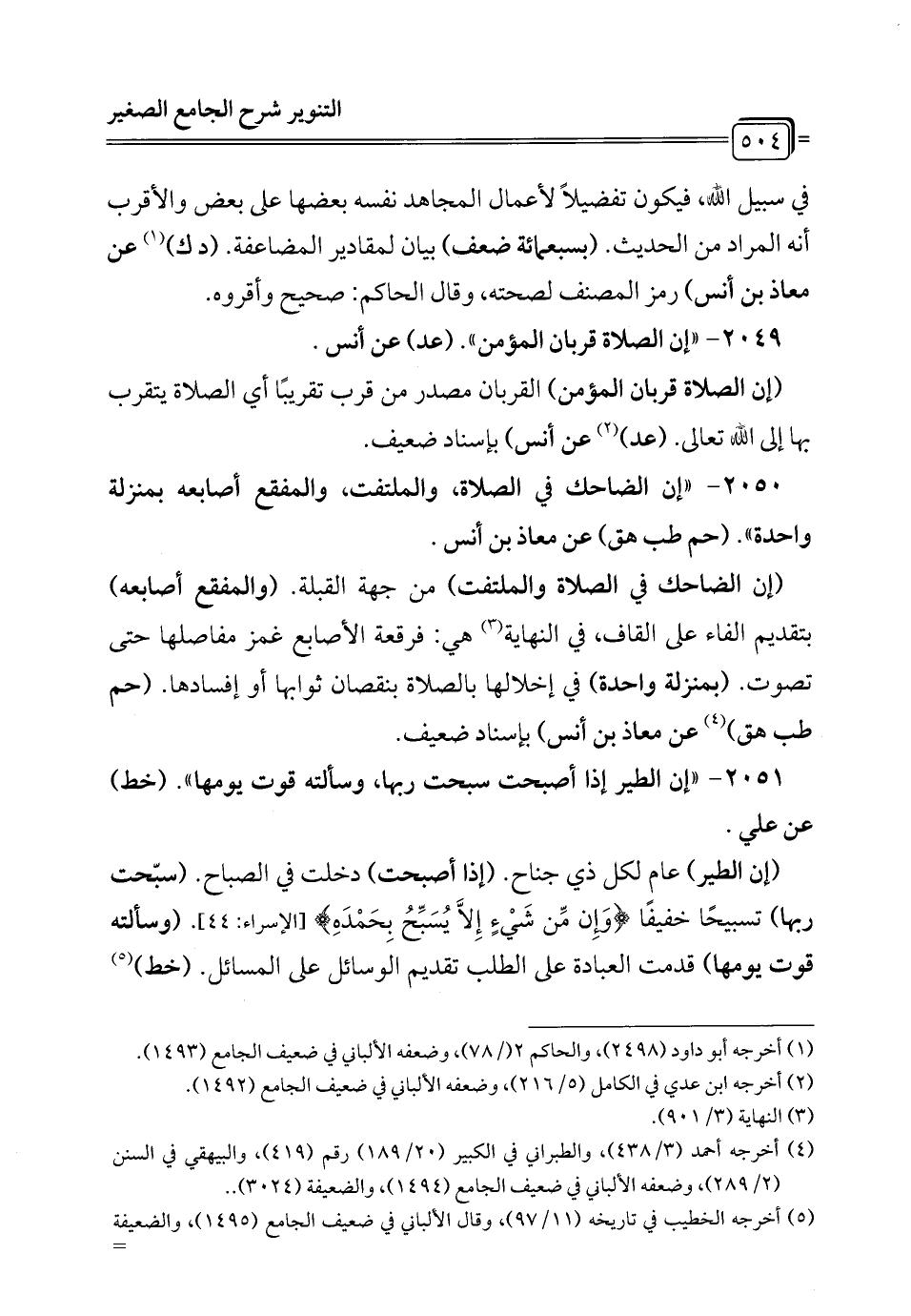 2050 - "إن الضاحك في الصلاة، والملتفت، والمفقع أصابعه بمنزلة واحدة). (حم طب هق) عن معاذ بن أنس.