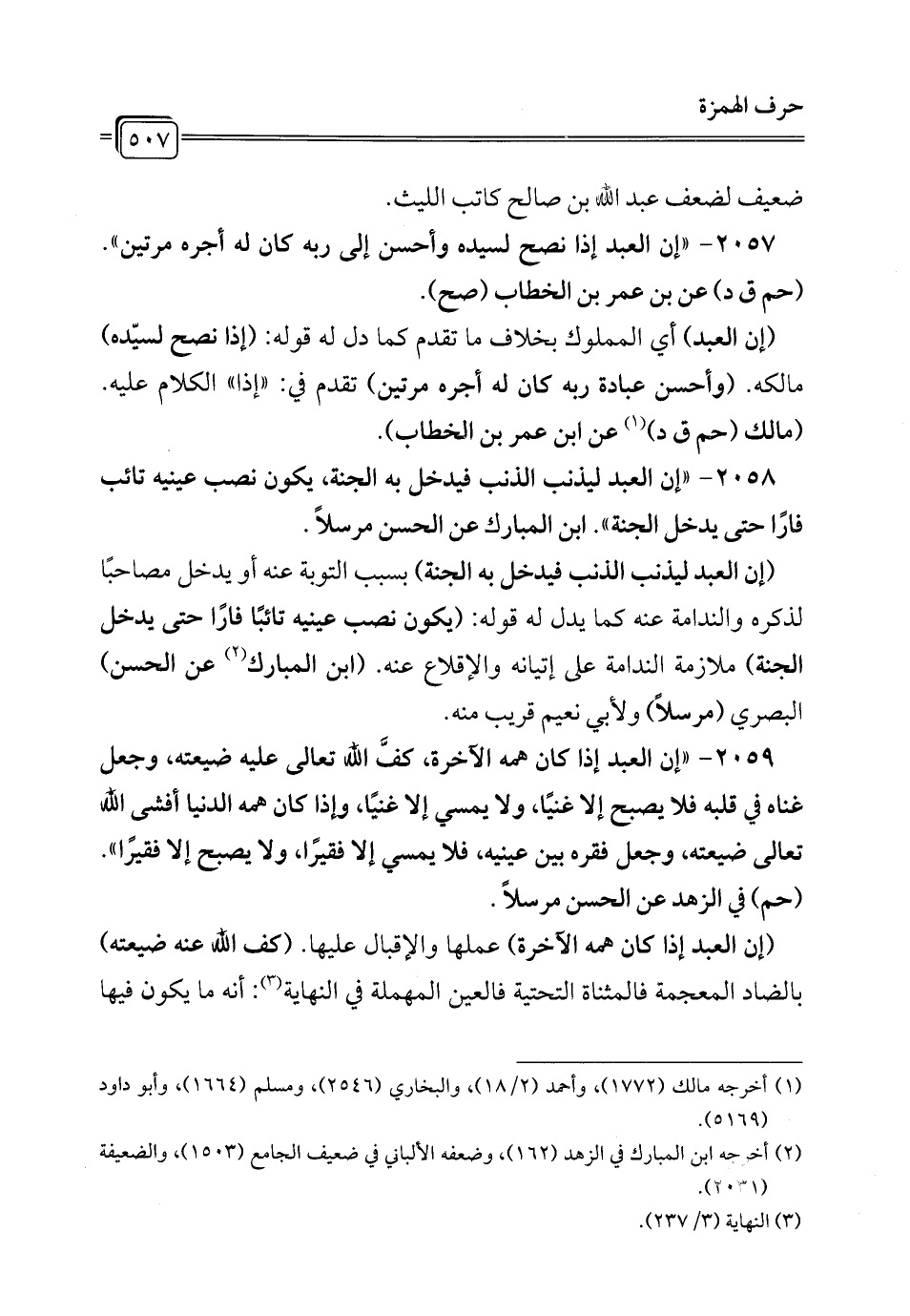 2057 - "إن العبد إذا نصح لسيده وأحسن إلى ربه كان له أجره مرتين". (حم ق د) عن بن عمر بن الخطاب (صح).