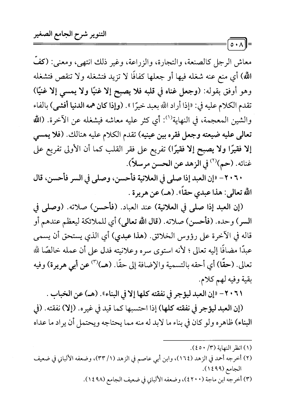 (¬2) أخرجه أحمد في الزهد (164)، وابن أبي عاصم في الزهد (1/ 33)، وضعفه الألباني في ضعيف الجامع (1499).