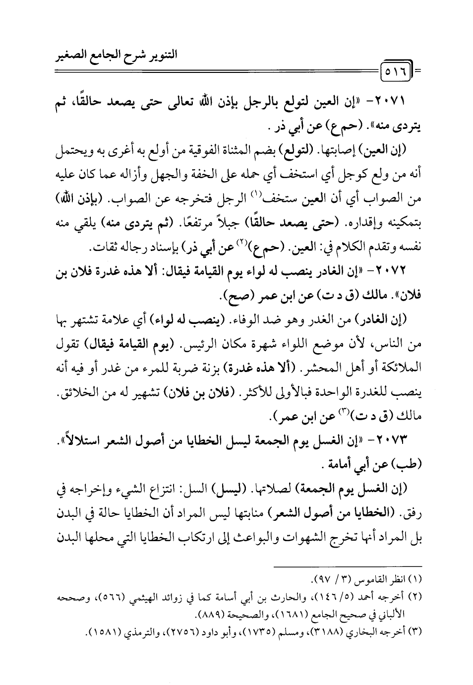 2072 - "إن الغادر ينصب له لواء يوم القيامة فيقال: ألا هذه غدرة فلان بن فلان". مالك (ق د ت) عن ابن عمر (صح).