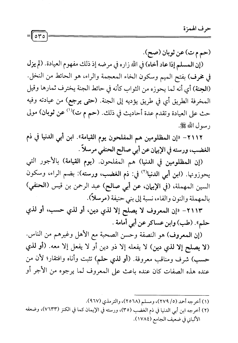 2112 - "إن المظلومين هم المفلحون يوم القيامة". ابن أبي الدنيا في ذم الغضب، ورسته في الإيمان عن أبي صالح الحنفي مرسلًا.
