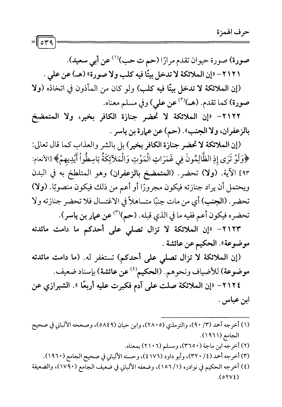 2121 - "إن الملائكة لا تدخل بيتًا فيه كلب ولا صورة" (هـ) عن علي.
