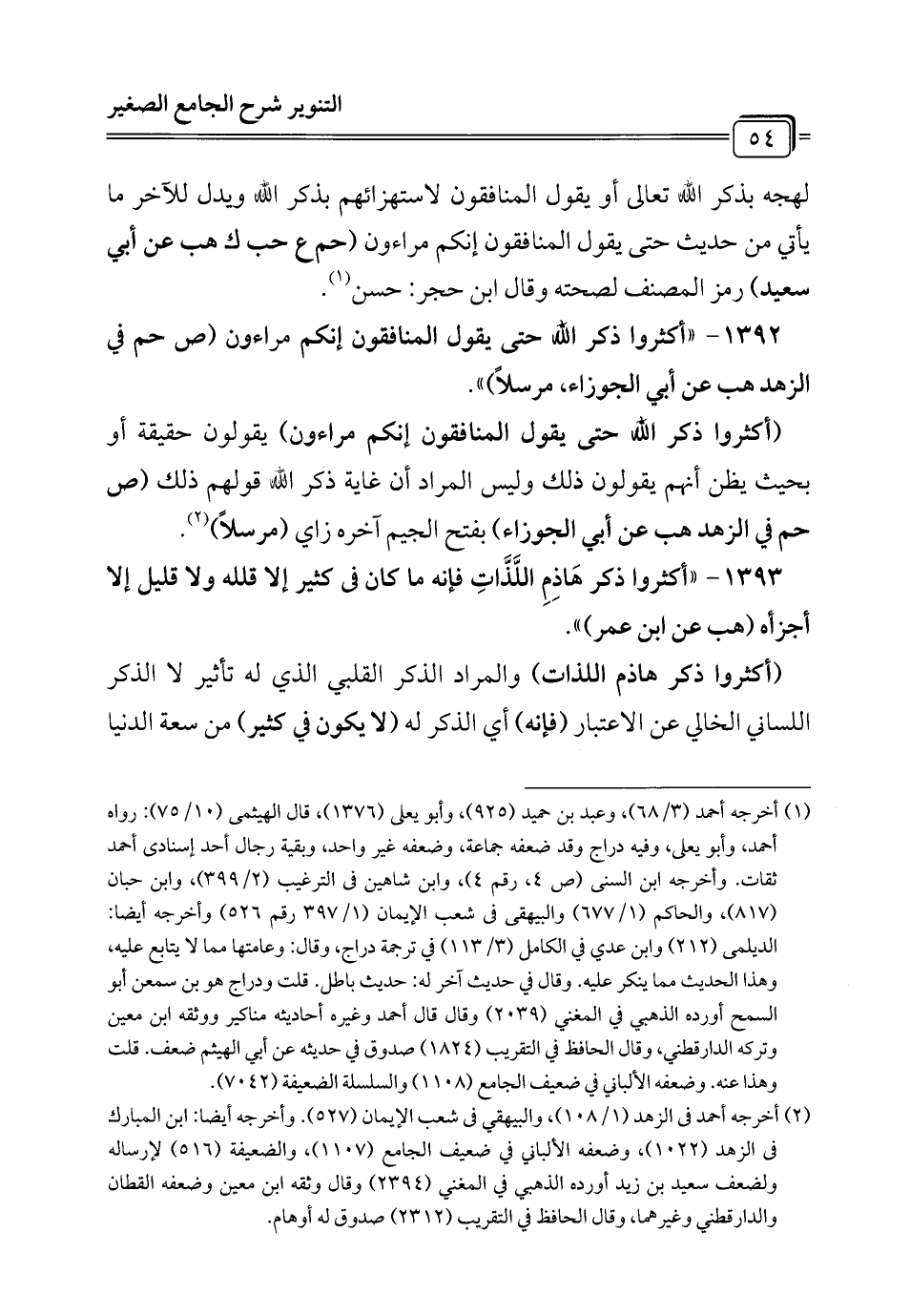 1392 - "أكثروا ذكر الله حتى يقول المنافقون إنكم مراءون (ص حم في الزهد هب عن أبي الجوزاء، مرسلًا) ".