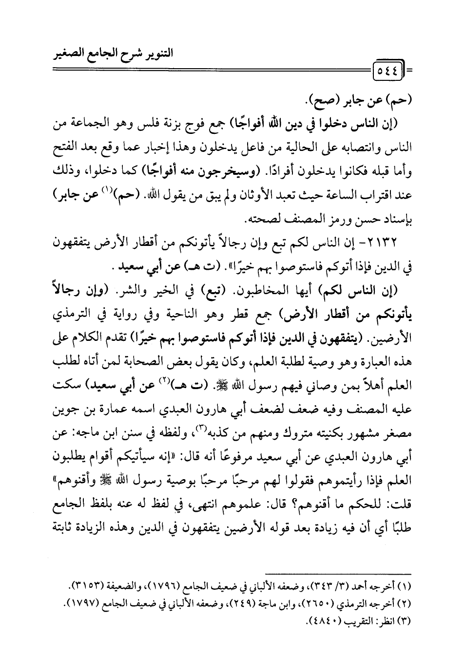 2132 - إن الناس لكم تبع وإن رجالًا يأتونكم من أقطار الأرض يتفقهون في الدين فإذا أتوكم فاستوصوا بهم خيرًا". (ت هـ) عن أبي سعيد.