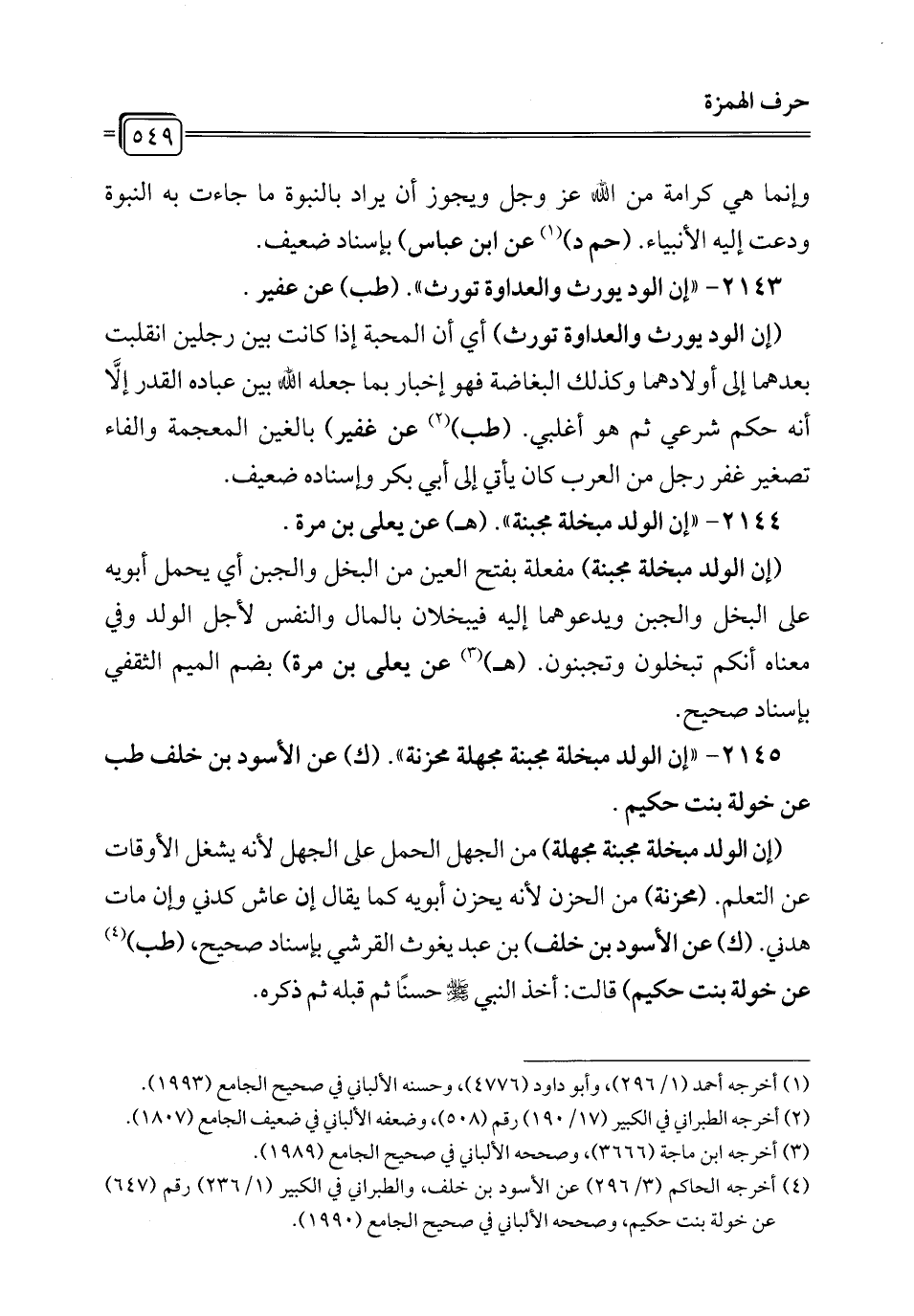 2144 - "إن الولد مبخلة مجبنة". (هـ) عن يعلي بن مرة.
