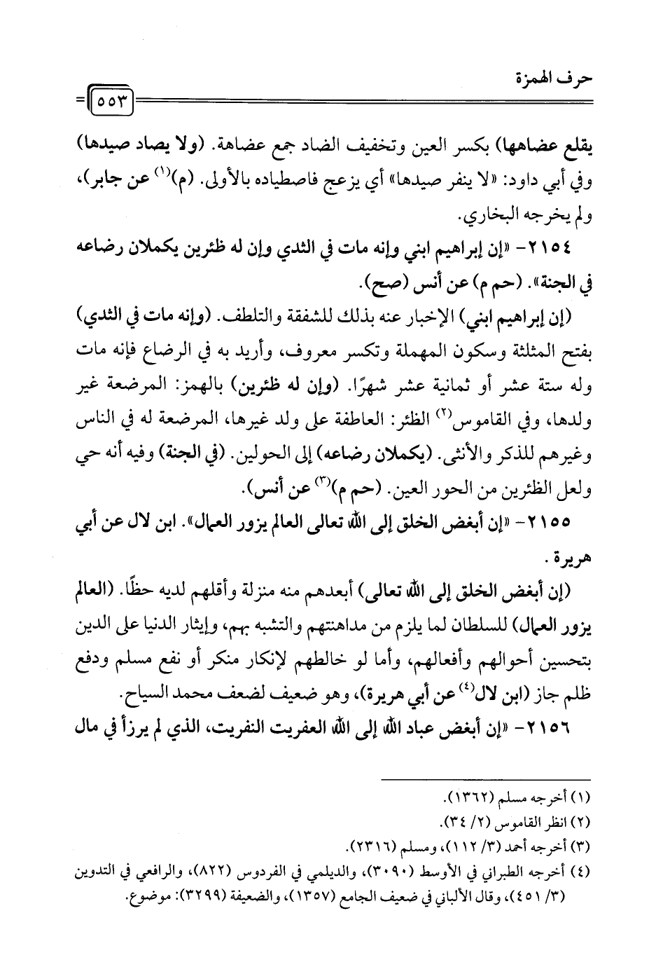 2155 - "إن أبغض الخلق إلى الله تعالى العالم يزور العمال". ابن لال عن أبي هريرة.