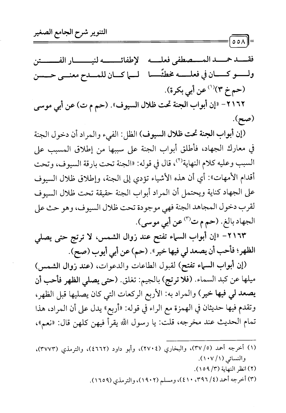 2162 - "إن أبواب الجنّة تحت ظلال السيوف". (حم م ت) عن أبي موسى (صح).