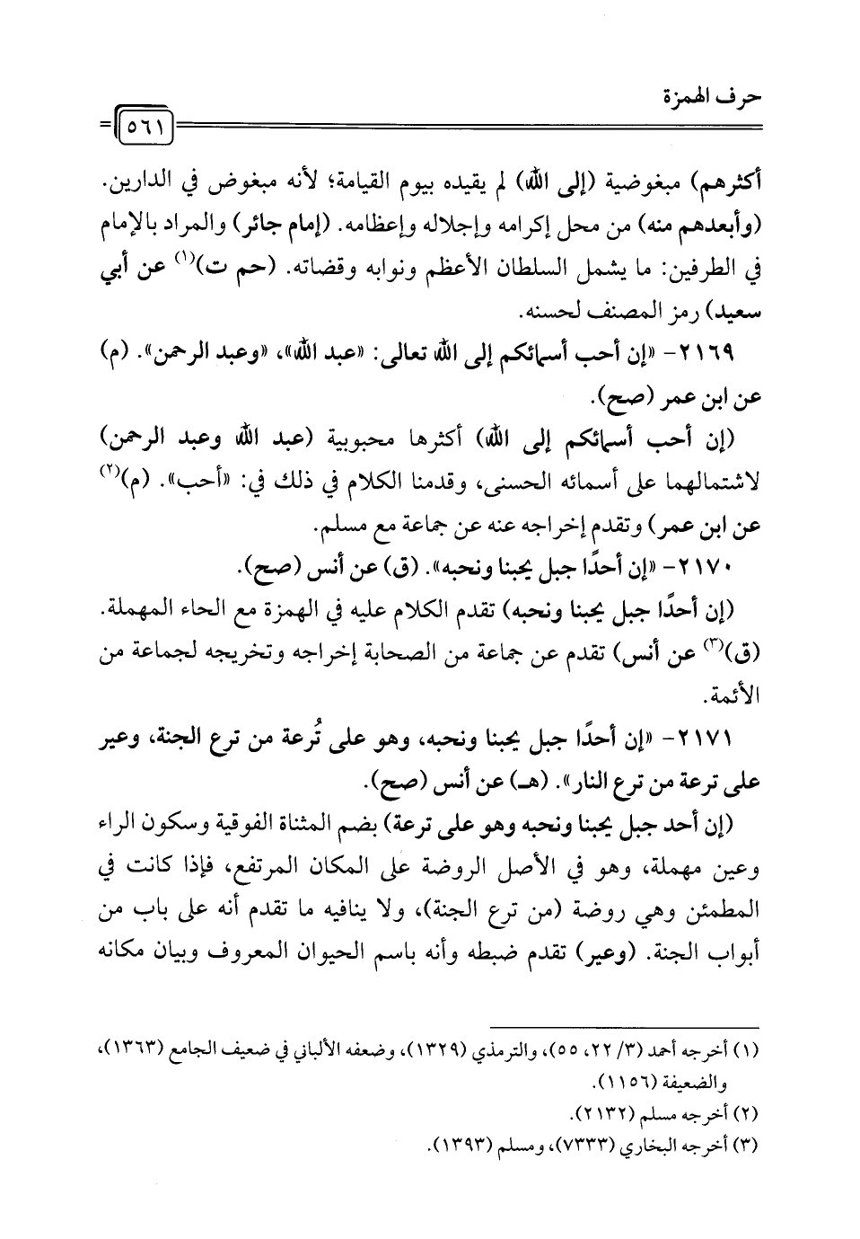 2170 - "إن أحدًا جبل يحبنا ونحبه". (ق) عن أنس (صح).