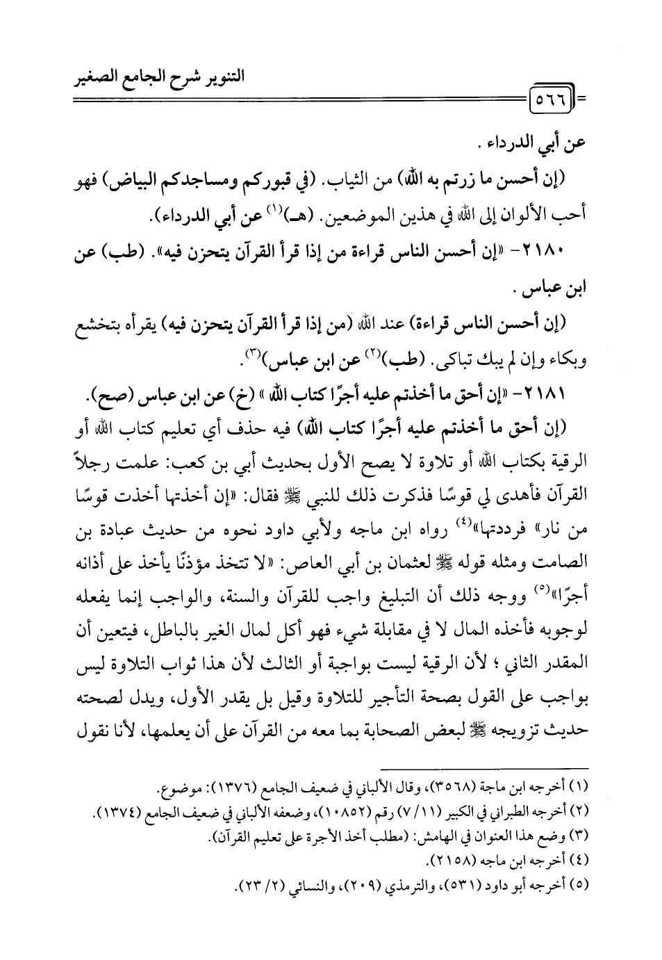 2181 - "إن أحق ما أخذتم عليه أجرًا كتاب الله" (خ) عن ابن عباس (صح).
