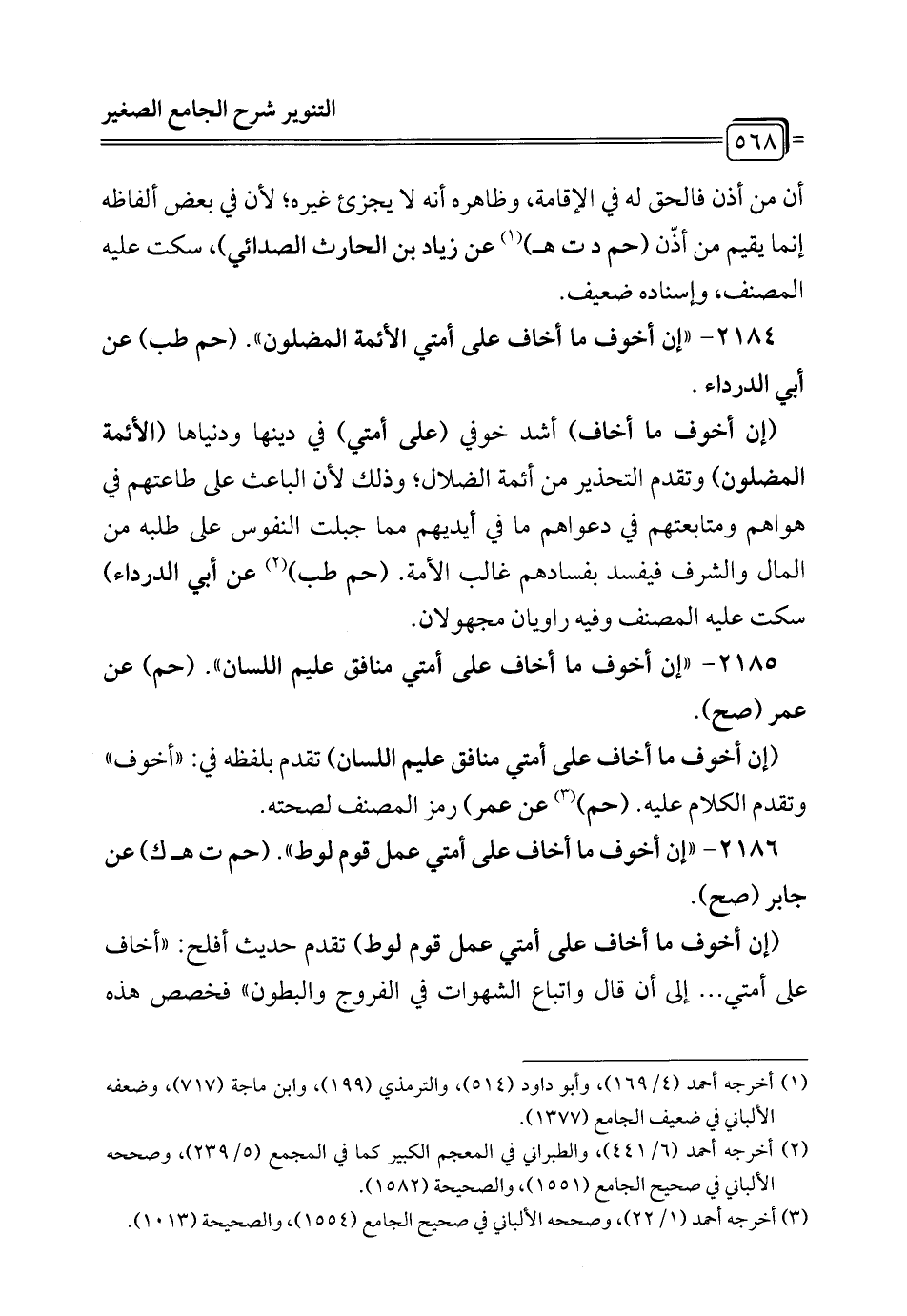 2184 - "إن أخوف ما أخاف على أمتي الأئمة المضلون". (حم طب) عن أبي الدرداء.