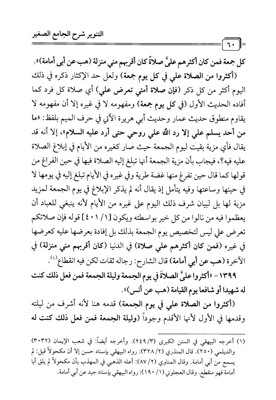 1399 - "أكثروا علىَّ الصلاةَ في يوم الجمعة وليلة الجمعة فمن فعل ذلك كنت له شهيدا أو شافعا يوم القيامة (هب عن أنس) ".