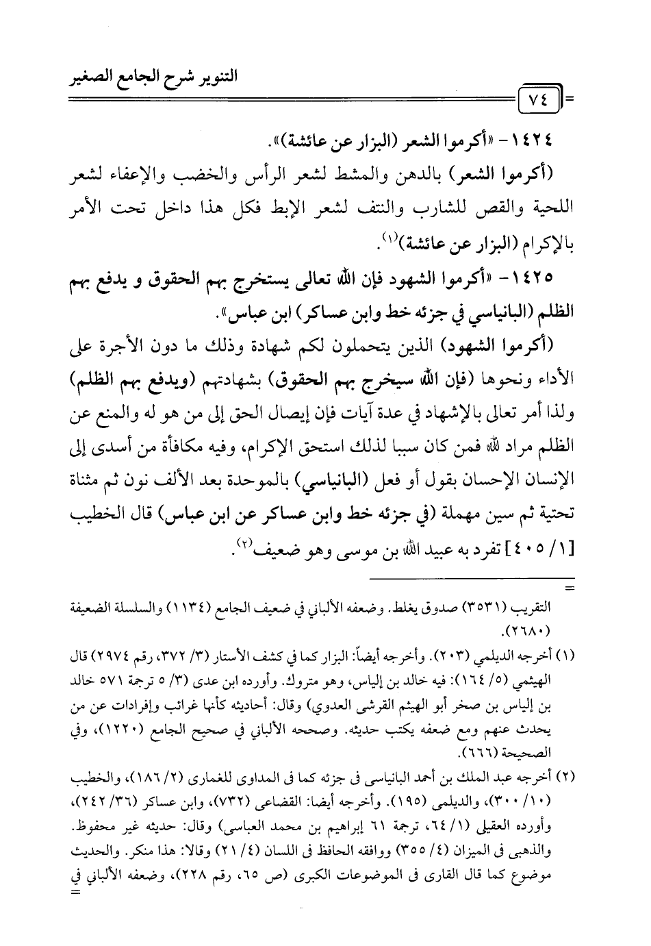 1425 - "أكرموا الشهود فإن الله تعالى يستخرج بهم الحقوق ويدفع بهم الظلم (البانياسي في جزئه خط وابن عساكر) ابن عباس".