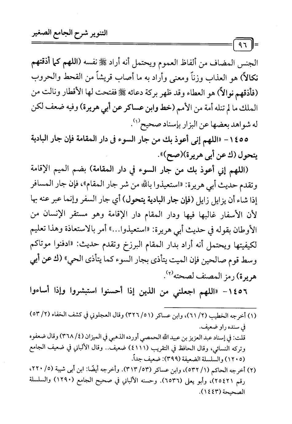 1455 - "اللَّهم إنى أعوذ بك من جار السوء في دار المقامة فإن جار البادية يتحول (ك عن أبي هريرة) (صح) ".