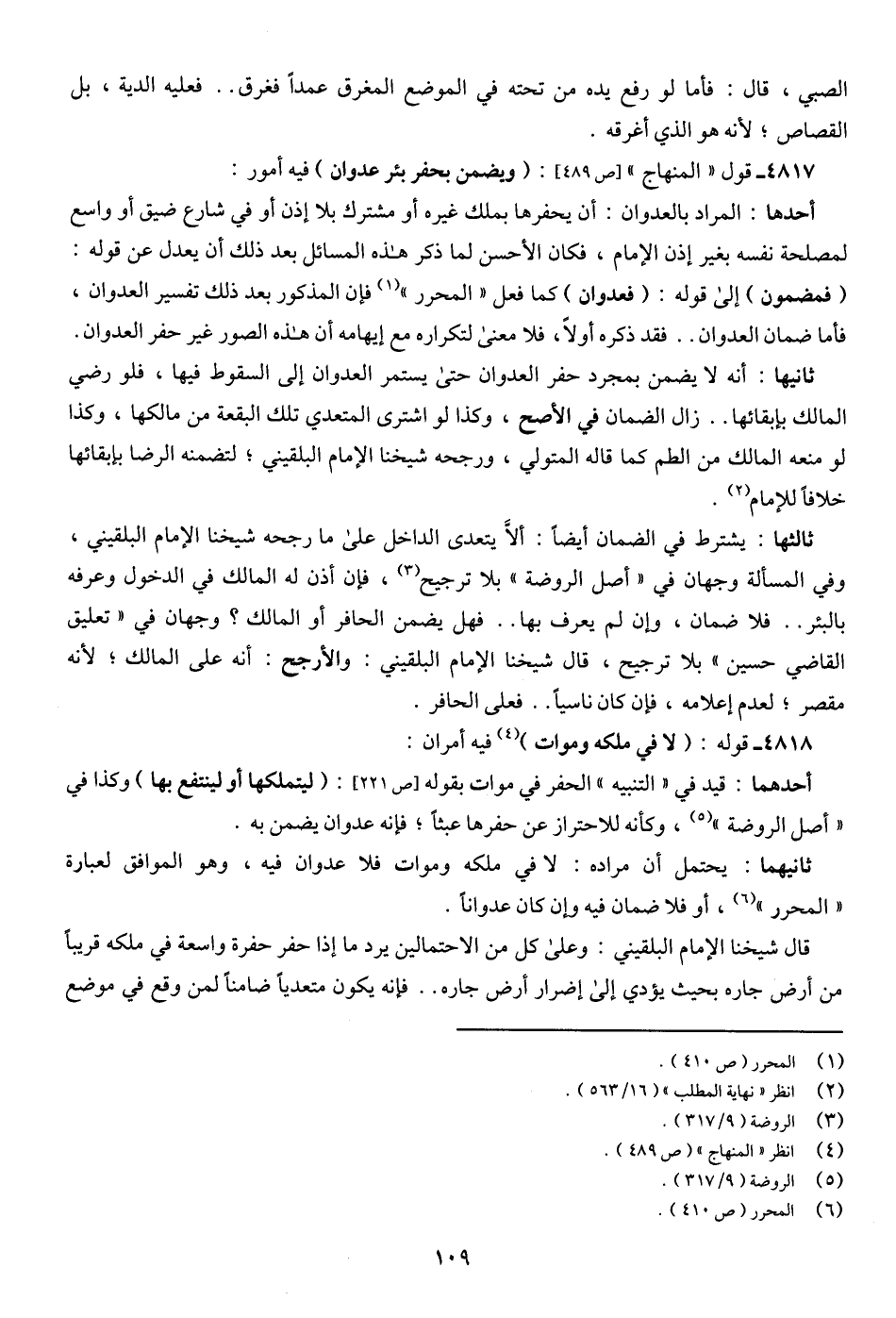 4817 - قول "المنهاج" [ص 489]: (ويضمن بحفر بئر عدوان) فيه أمور: