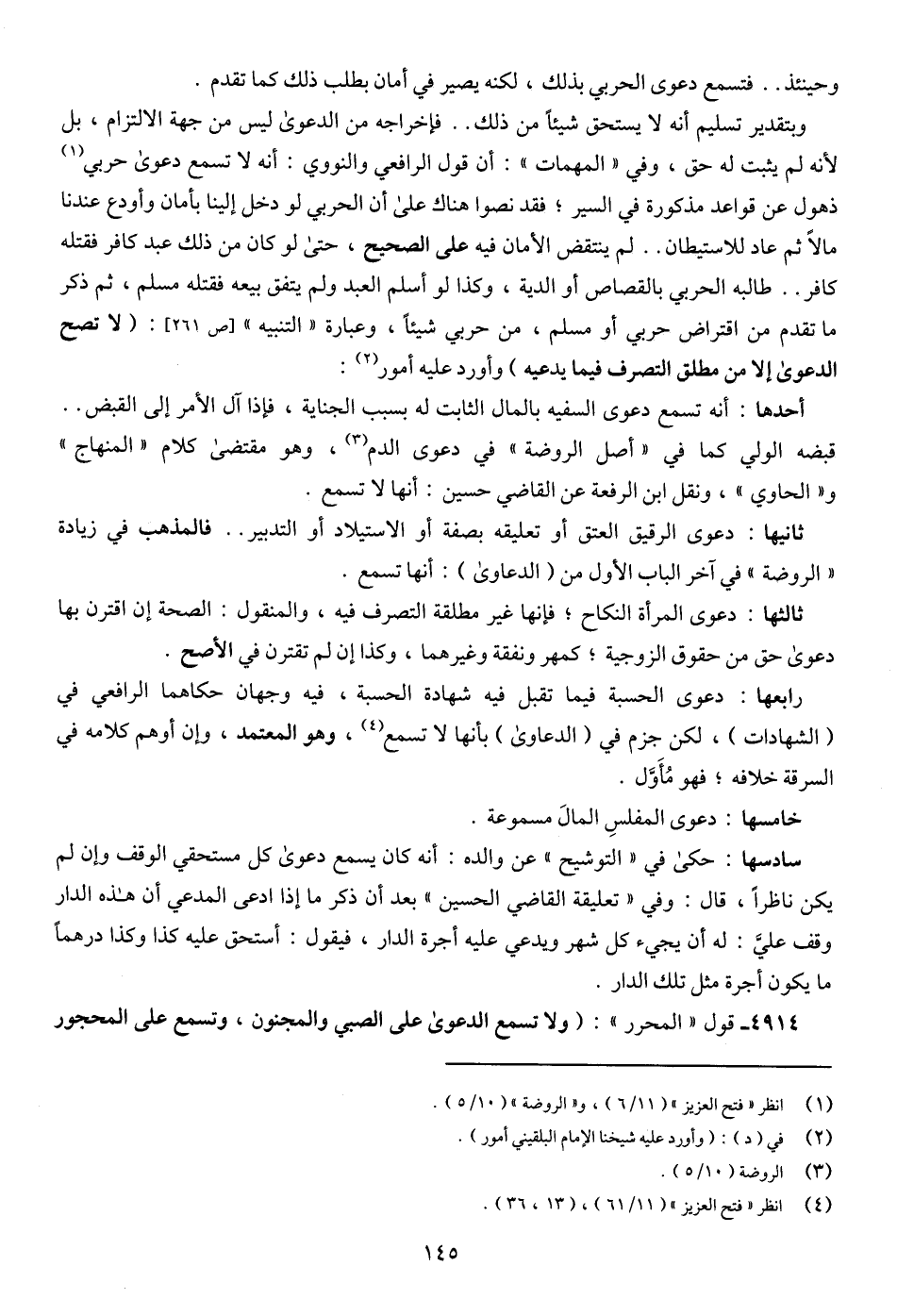 4914 - قول "المحرر": (ولا تسمع الدعوى على الصبي والمجنون، وتسمع على المحجور