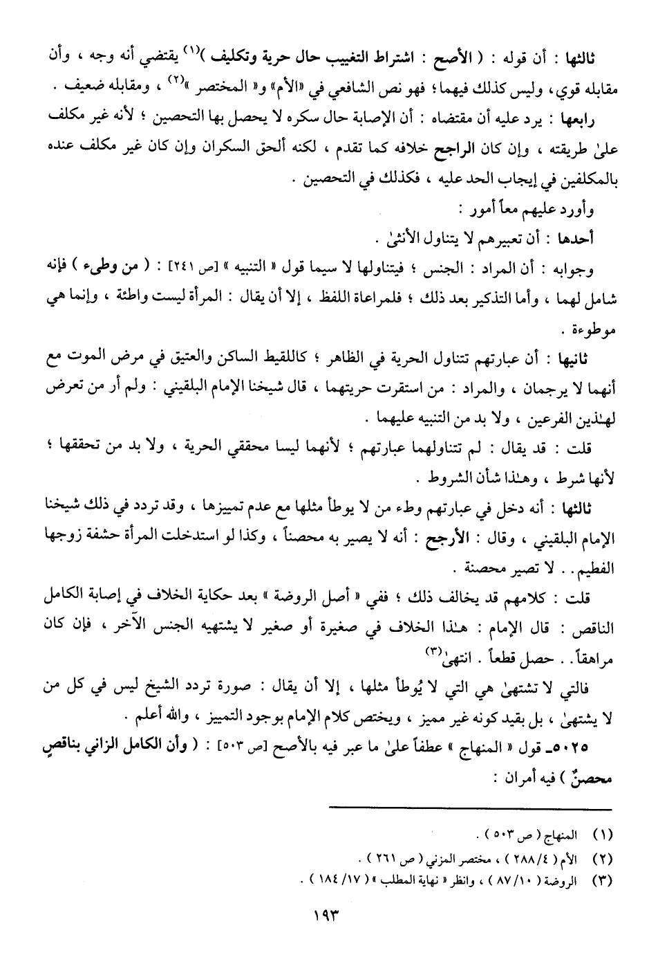 5025 - قول "المنهاج" عطفًا على ما عبر فيه بالأصح [ص 503]: (وأن الكامل الزاني بناقصٍ محصنٌ) فيه أمران: