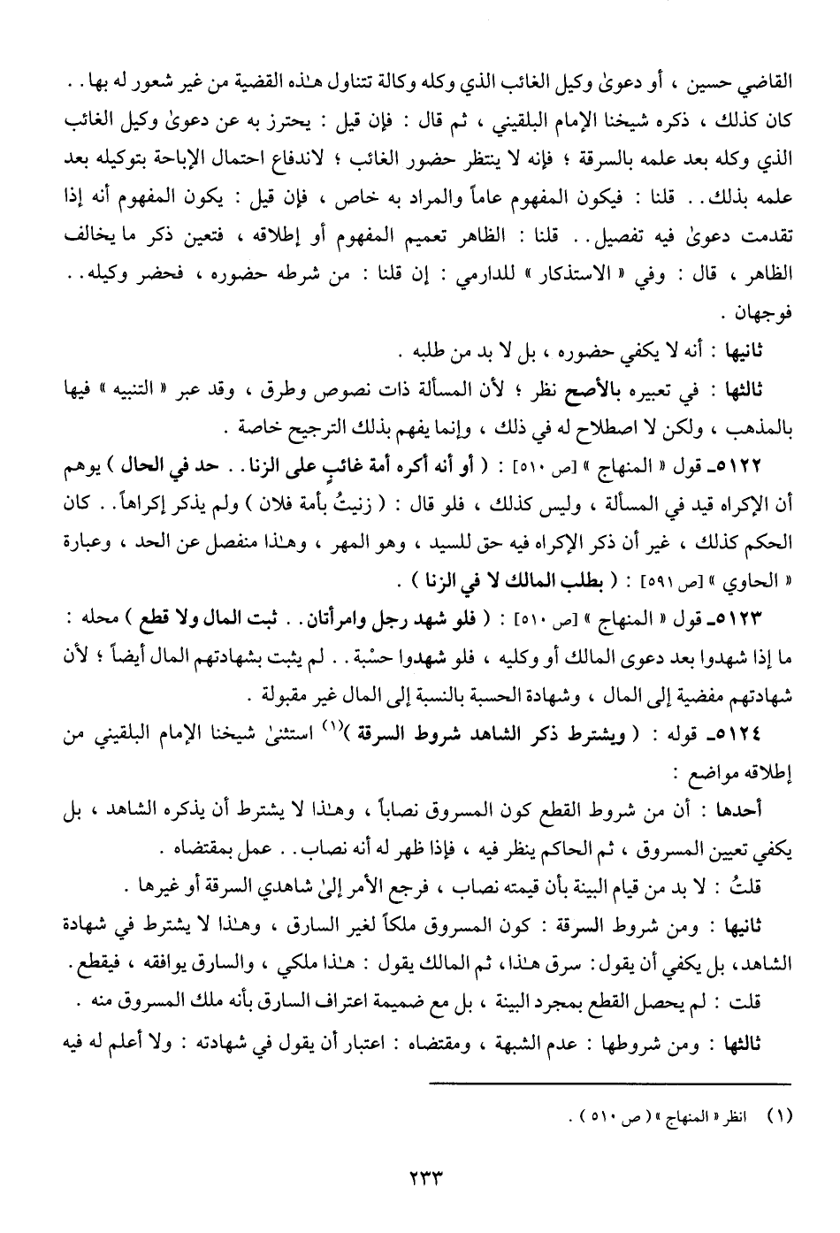 أحدها: أن من شروط القطع كون المسروق نصابًا، وهذا لا يشترط أن يذكره الشاهد، بل يكفي تعيين المسروق، ثم الحاكم ينظر فيه، فإذا ظهر له أنَّه نصاب .. عمل بمقتضاه.