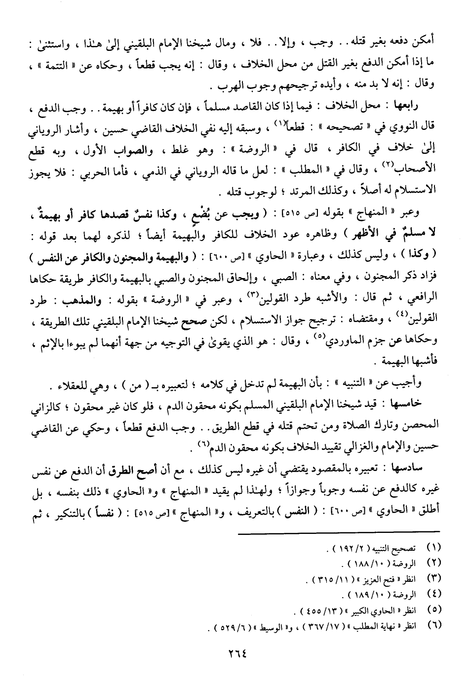 خامسها: قيد شيخنا الإمام البلقيني المسلم بكونه محقون الدم، فلو كان غير محقون؛ كالزاني المحصن وتارك الصلاة ومن تحتم قتله في قطع الطَّرِيقِ .. وجب الدفع قطعا، وحكى عن القاضي حسين والإمام والغزالي تقييد الخلاف بكونه محقون الدم (¬6).