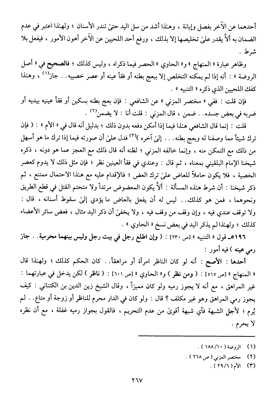 5196 - قول "التنبيه" [ص 230]: (وإن اطلع رجل في بيت رجل وليس بينهما محرمية .. جاز رمي عينه) فيه أمور: