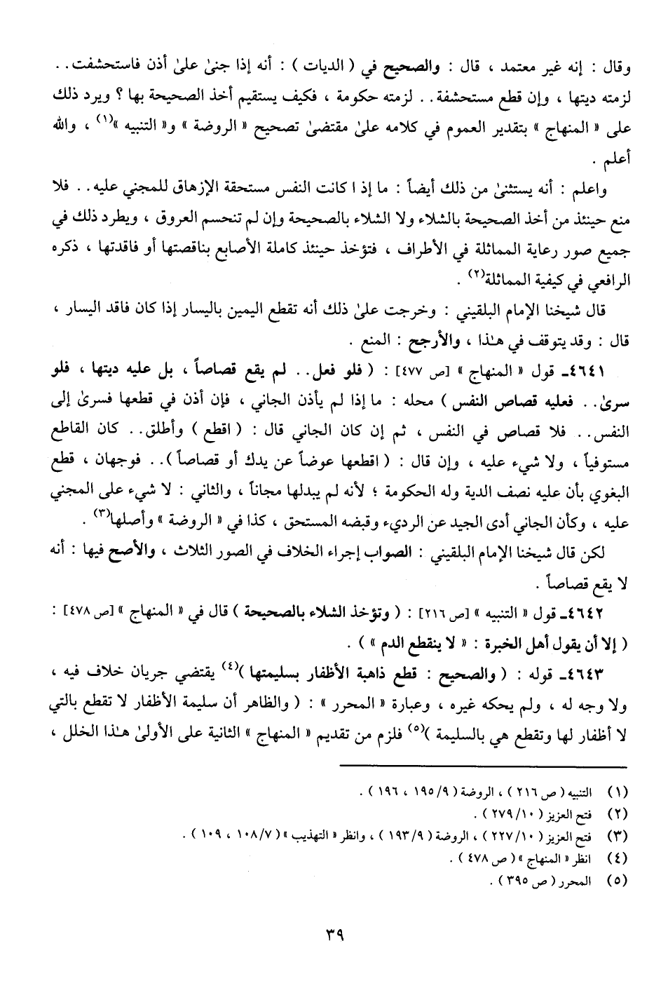 وقال: إنه غير معتمد، قال: والصحيح في (الديات): أنه إذا جنى على أذن فاستحشفت .. لزمته ديتها، وإن قطع مستحشفة .. لزمته حكومة، فكيف يستقيم أخذ الصحيحة بها؟ ويرد ذلك على " المنهاج " بتقدير العموم في كلامه على مقتضى تصحيح " الروضة " و" التنبيه " (¬1)، والله أعلم.