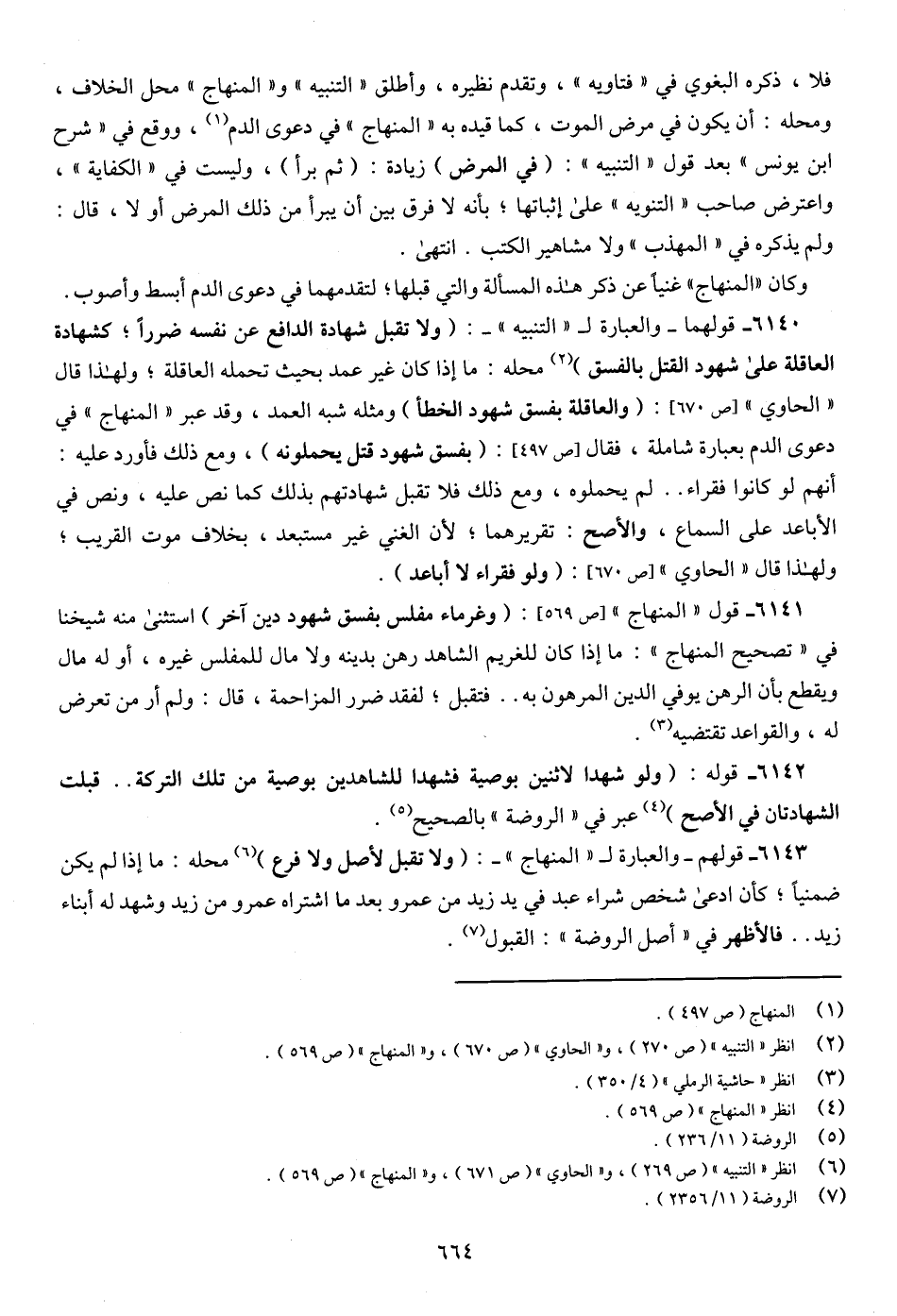 6143 - قولهم - والعبارة لـ " المنهاج " -: (ولا تقبل لأصل ولا فرع) (¬6) محله: ما إذا لم يكن ضمنيًا؛ كأن ادعى شخص شراء عبد في يد زيد من عمرو بعد ما اشتراه عمرو من زيد وشهد له أبناء زيد .. فالأظهر في " أصل الروضة ": القبول (¬7).