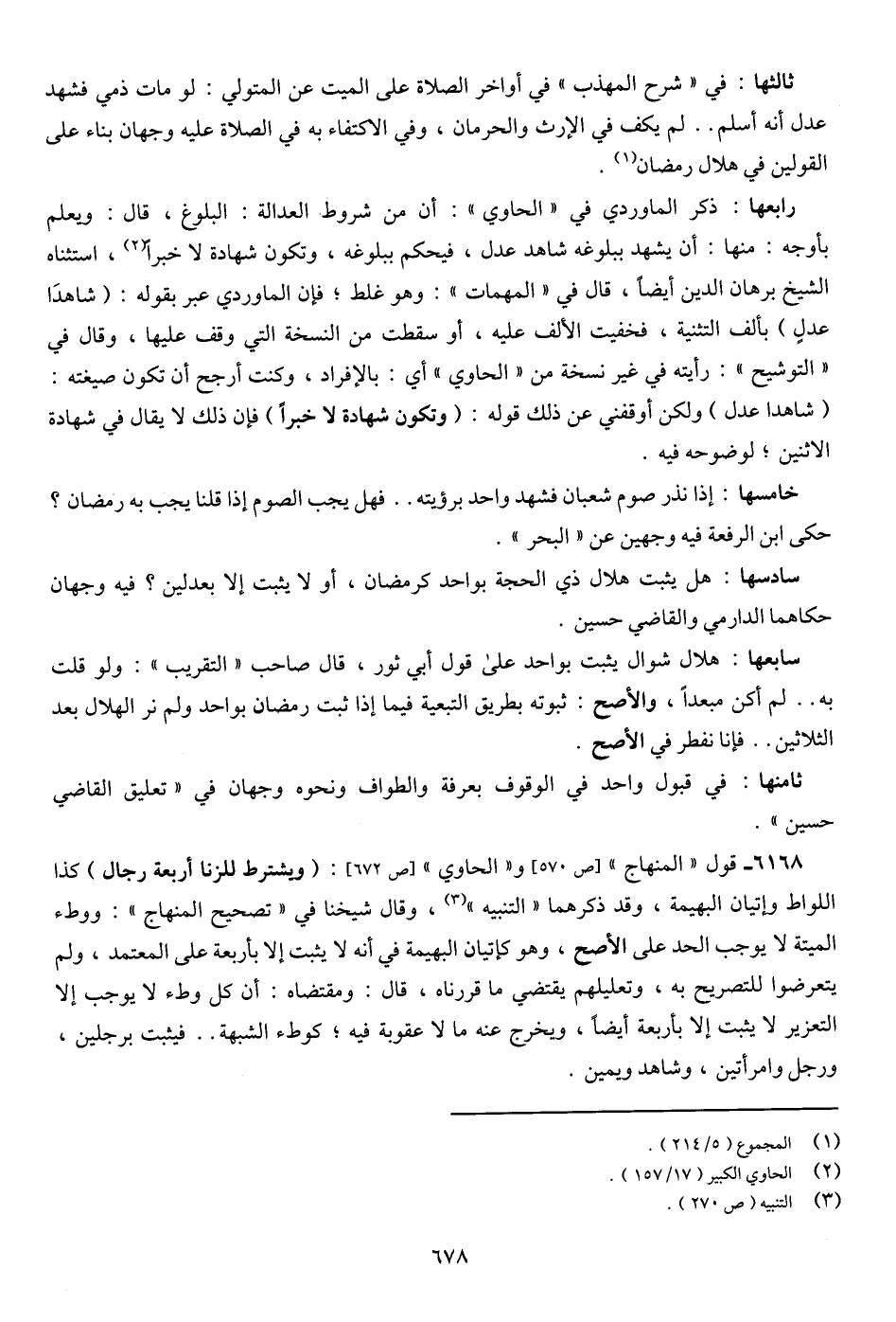 سادسها: هل يثبت هلال ذي الحجة بواحد كرمضان، أو لا يثبت إلا بعدلين؟ فيه وجهان حكاهما الدارمي والقاضي حسين.