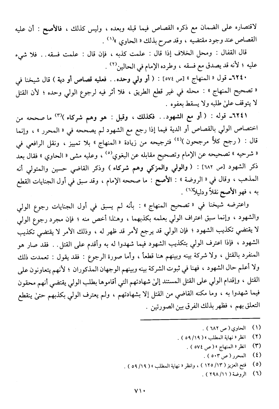 6240 - قول "المنهاج" [ص 574]: (أو ولي وحده .. فعليه قصاص أو ديه) قال شيخنا في "تصحيح المنهاج": محله في غير قطع الطريق، فلا أثر فيه لرجوع الولي وحده؛ لأن القتل لا يتوقف على طلبه ولا يسقط بعفوه.