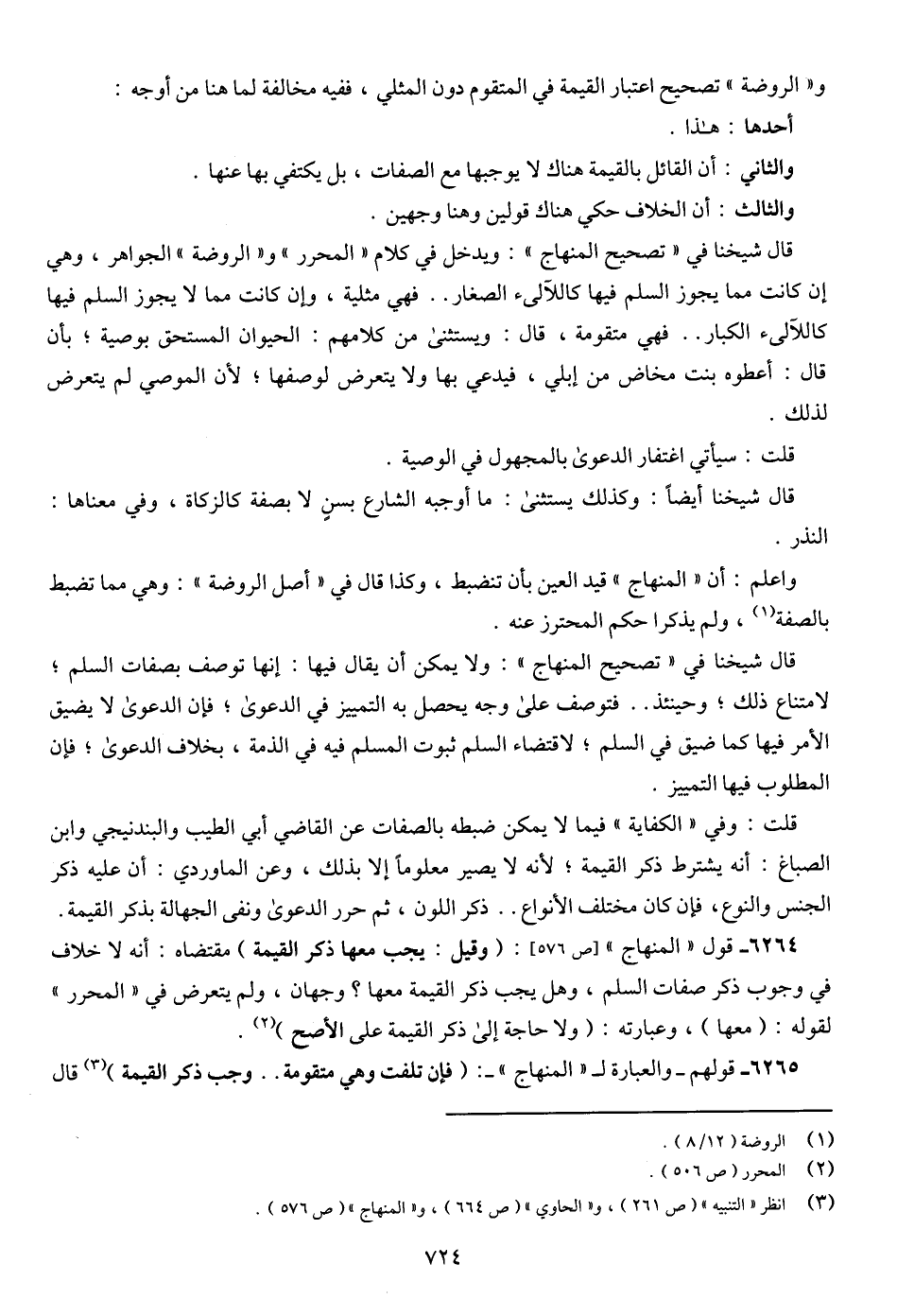 6264 - قول "المنهاج" [ص 576]: (وقيل: يجب معها ذكر القيمة) مقتضاه: أنه لا خلاف في وجوب ذكر صفات السلم، وهل يجب ذكر القيمة معها؟ وجهان، ولم يتعرض في "المحرر" لقوله: (معها)، وعبارته: (ولا حاجة إلى ذكر القيمة على الأصح) (¬2).