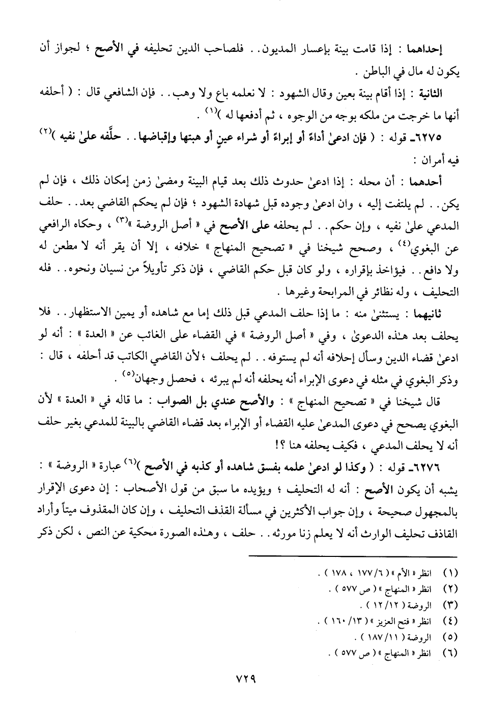 6275 - قوله: (فإن ادعى أداءً أو إبراءً أو شراء عينٍ أو هبتها وإقباضها .. حلَّفه على نفيه) (¬2) فيه أمران: