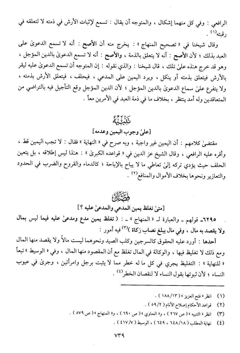 6295 - قولهم - والعبارة لـ "المنهاج" -: (تغلظ يمين مدع ومدعى عليه فيما ليس بمال ولا يقصد به مال، وفي مال يبلغ نصاب زكاة) (¬3) فيه أمور: