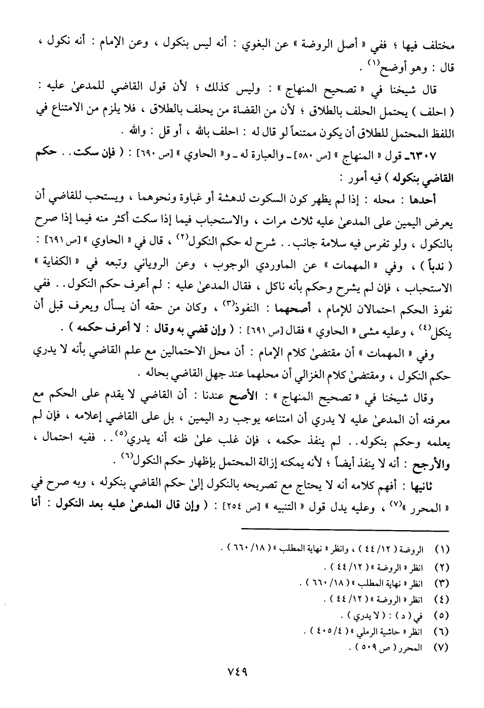 6307 - قول "المنهاج" [ص 580]- والعبارة له - و"الحاوي" [ص 690]: (فإن سكت .. حكم القاضي بنكوله) فيه أمور: