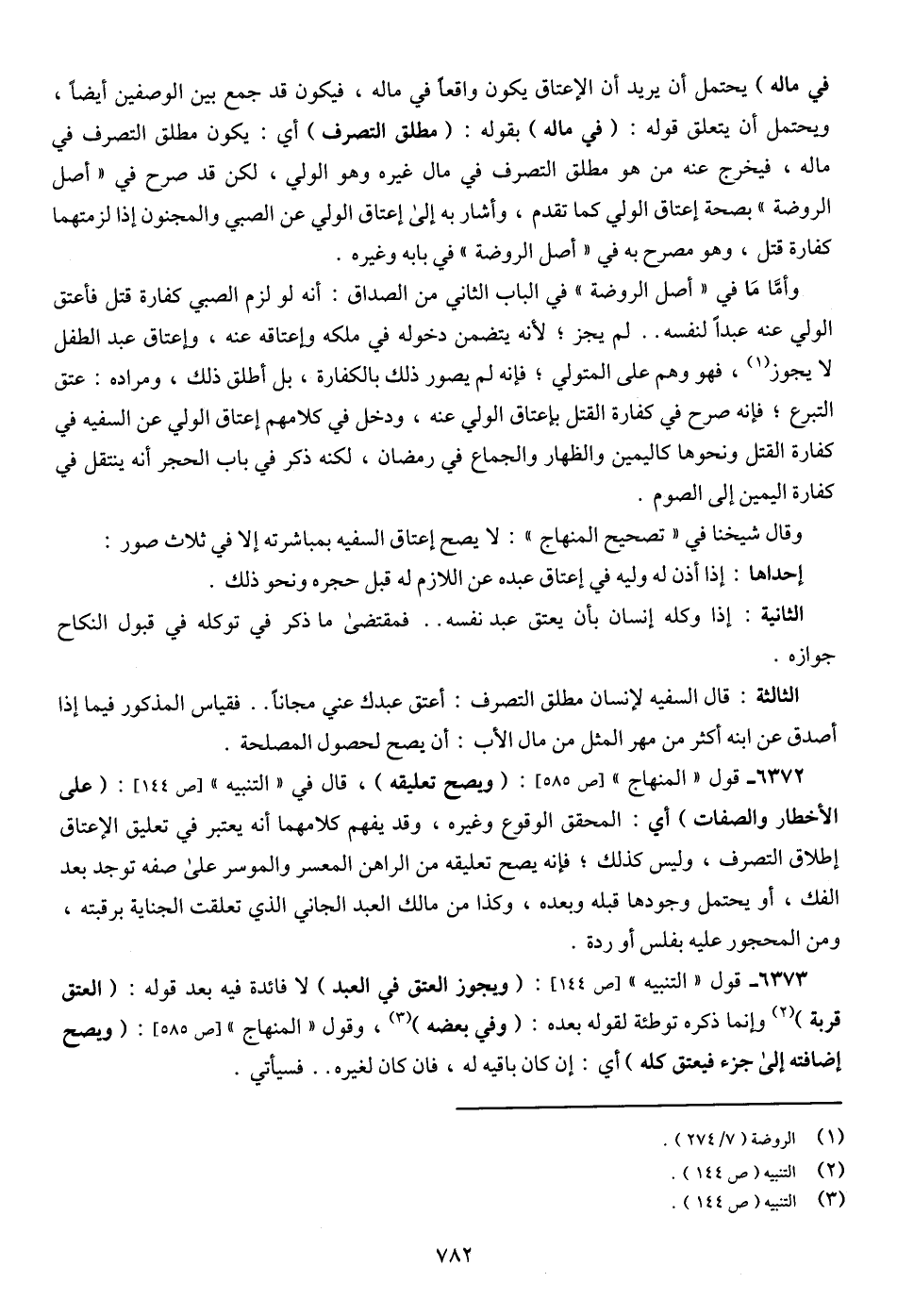 6373 - قول "التنبيه" [ص 144]: (ويجوز العتق في العبد) لا فائدة فيه بعد قوله: (العتق قربة) (¬2) وإنما ذكره توطئة لقوله بعده: (وفي بعضه) (¬3)، وقول "المنهاج" [ص 585]: (ويصح إضافته إلى جزء فيعتق كله) أي: إن كان باقيه له، فإن كان لغيره .. فسيأتي.