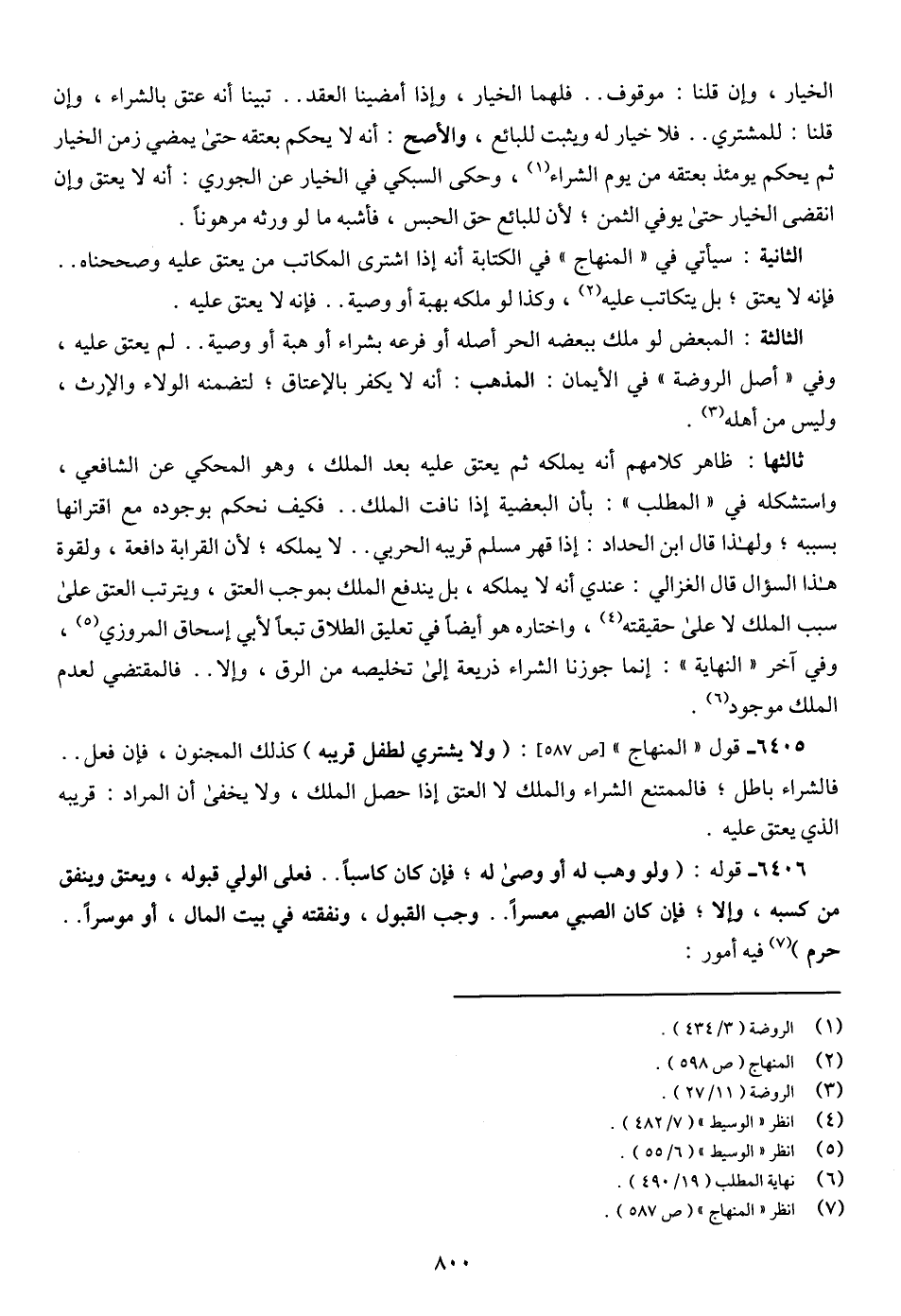 6405 - قول "المنهاج" [ص 587]: (ولا يشتري لطفل قريبه) كذلك المجنون، فإن فعل .. فالشراء باطل؛ فالممتنع الشراء والملك لا العتق إذا حصل الملك، ولا يخفى أن المراد: قريبه الذي يعتق عليه.