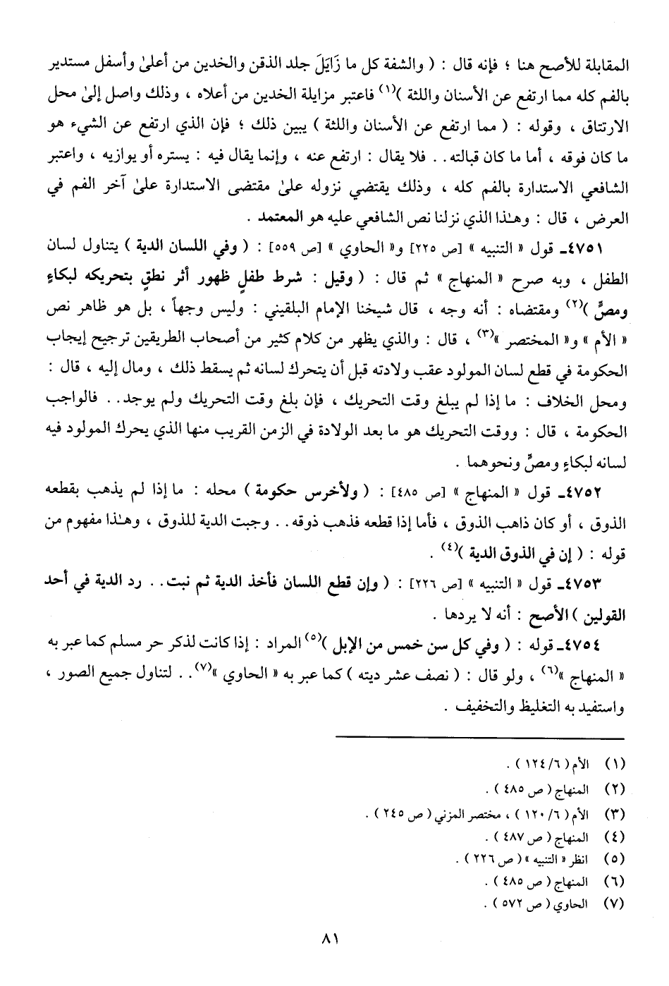 4753 - قول " التنبيه " [ص 226]: (وإن قطع اللسان فأخذ الدية ثم نبت .. رد الدية في أحد القولين) الأصح: أنه لا يردها.