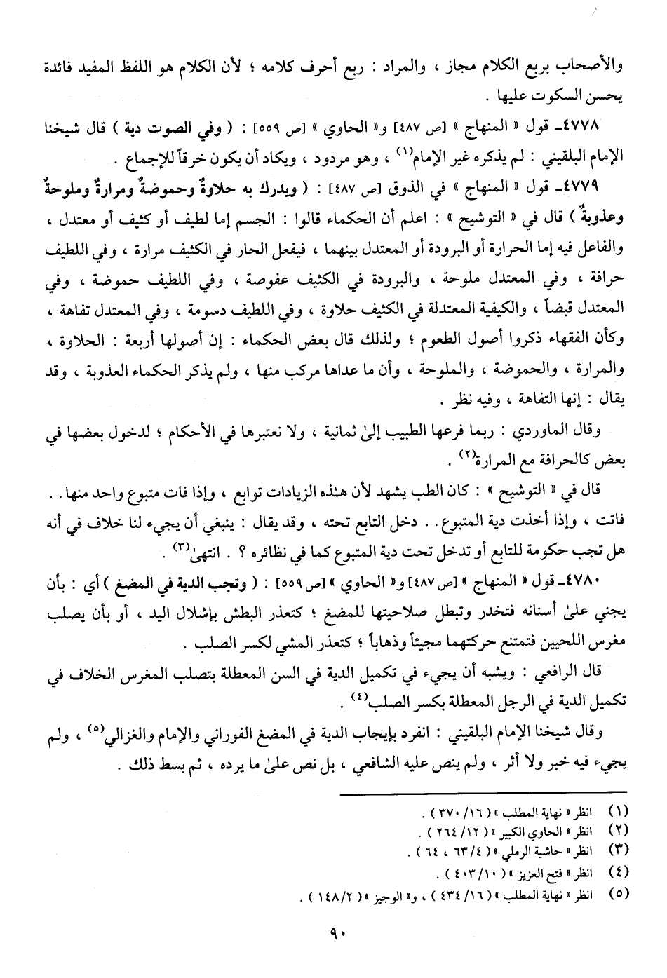 4778 - قول "المنهاج" [ص 487] و"الحاوي" [ص 559]: (وفي الصوت دية) قال شيخنا الإمام البلقيني: لم يذكره غير الإمام (¬1)، وهو مردود، ويكاد أن يكون خرقاً للإجماع.