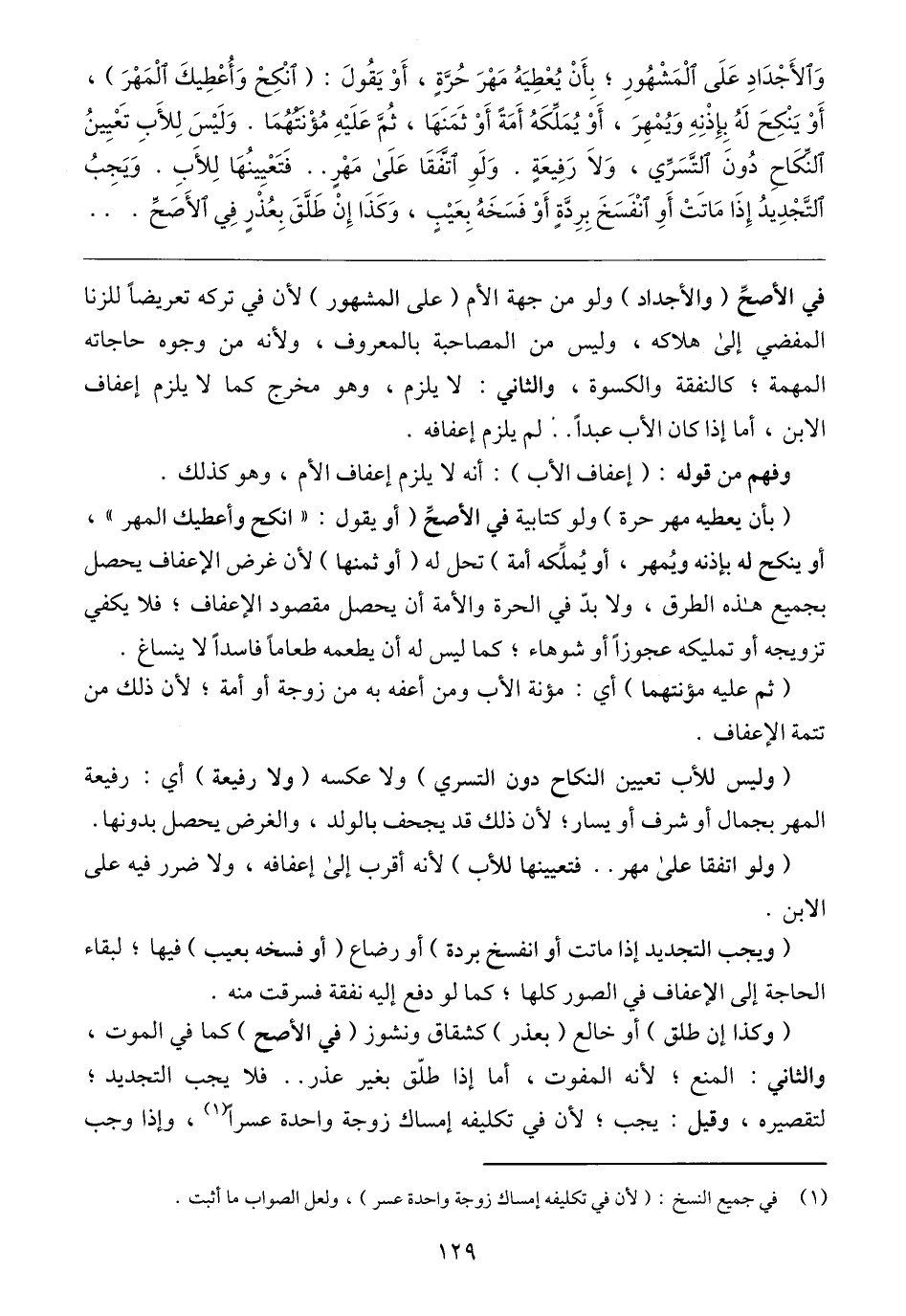 وفهم من قوله: (إعفاف الأب): أنه لا يلزم إعفاف الأم، وهو كذلك.
