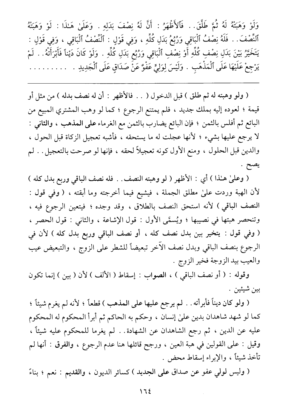 وقوله: (أو نصف الباقي)، الصواب: إسقاط (الألف) لأن (بين) إنما تكون بين شيئين.