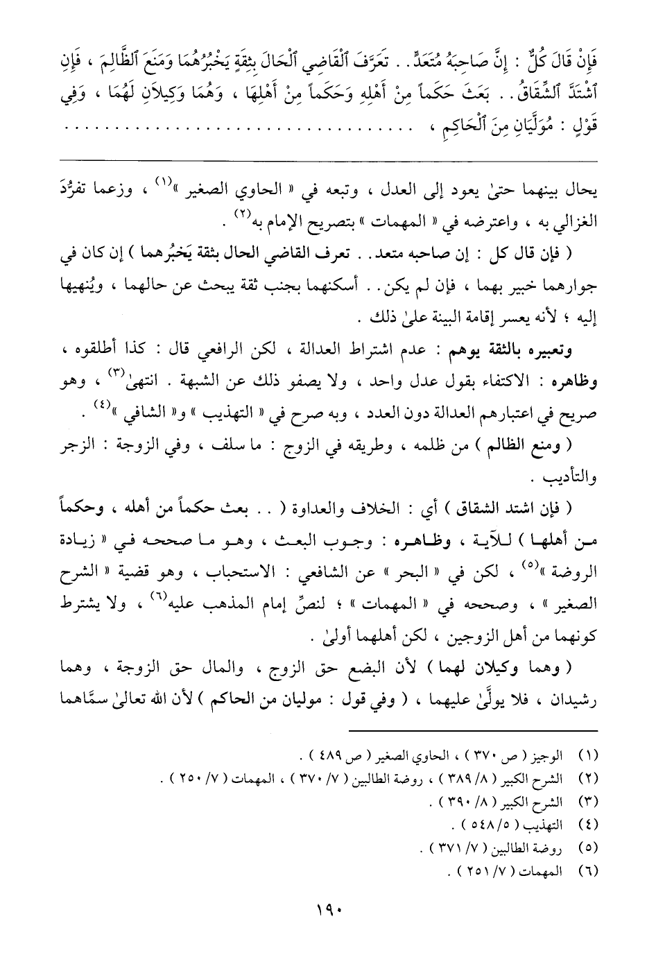 (١) الوجيز (ص ٣٧٠)، الحاوي الصغير (ص ٤٨٩).