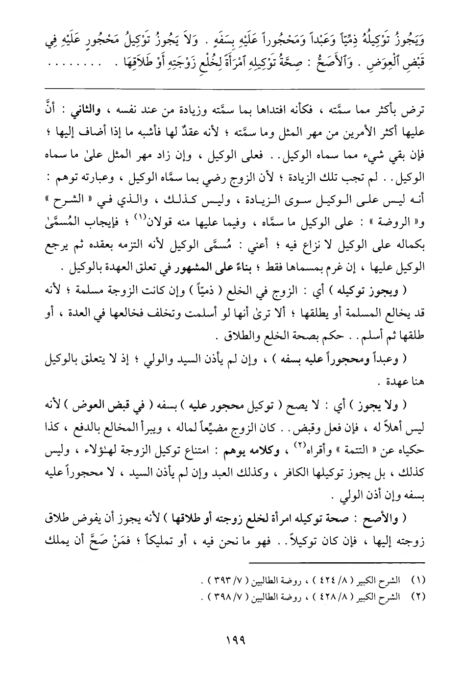 (٢) الشرح الكبير (٨/ ٤٢٨)، روضة الطالبين (٧/ ٣٩٨).