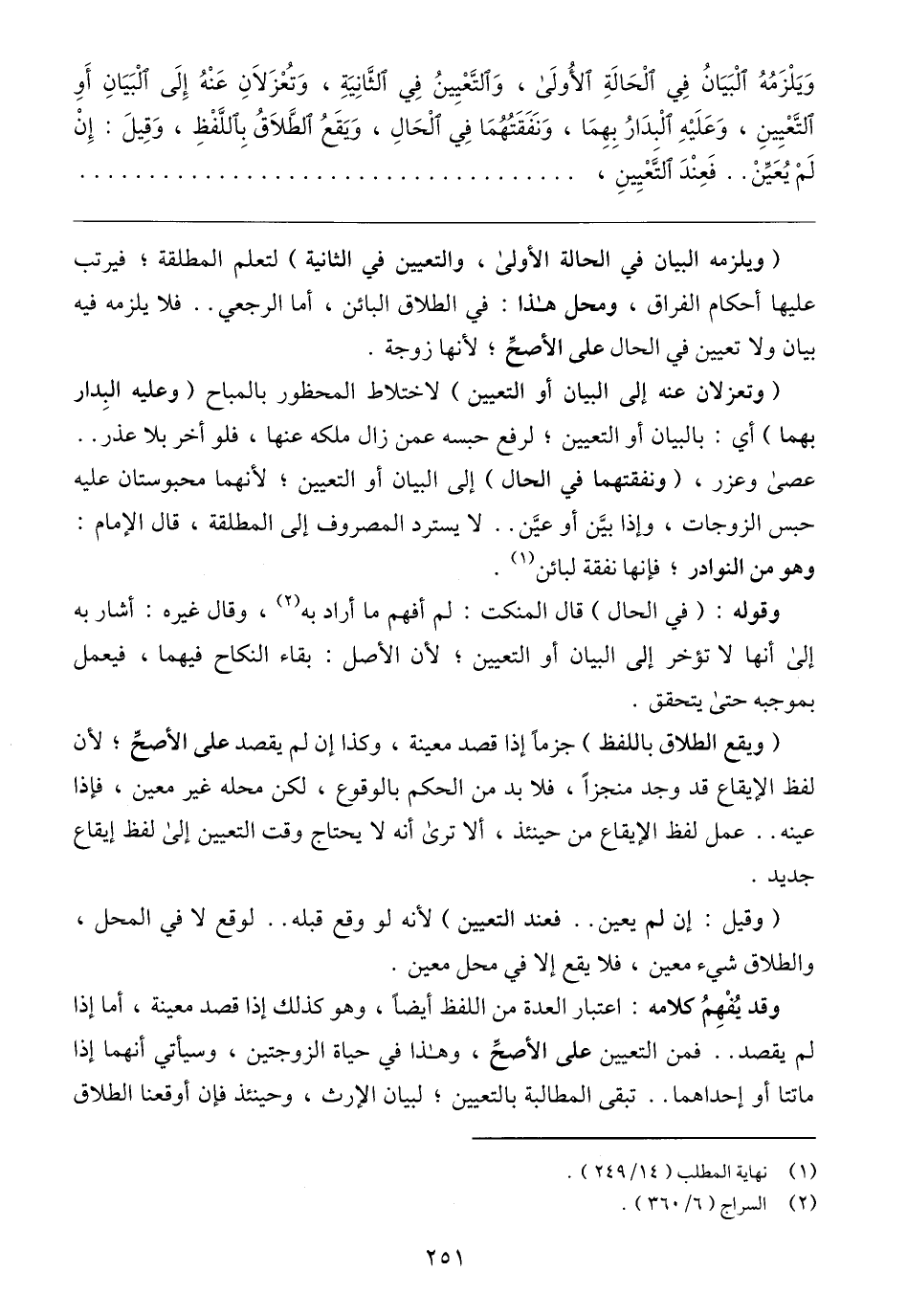 (ويلزمه البيان في الحالة الأولى، والتعيين في الثانية) لتعلم المطلقة؛ فيرتب عليها أحكام الفراق، ومحل هذا: في الطلاق البائن، أما الرجعي .. فلا يلزمه فيه بيان ولا تعيين في الحال على الأصحِّ؛ لأنها زوجة.