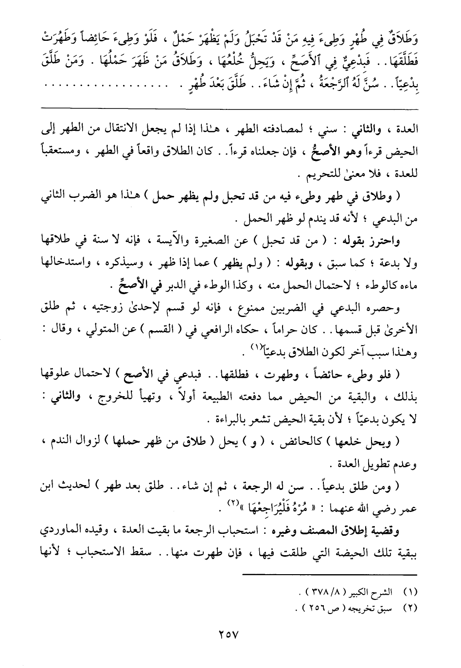 وحصره البدعي في الضربين ممنوع، فإنه لو قسم لإحدى زوجتيه، ثم طلق الأخرى قبل قسمها .. كان حرامًا، حكاه الرافعي في (القسم) عن المتولي، وقال: وهذا سبب آخر لكون الطلاق بدعيًّا (١).